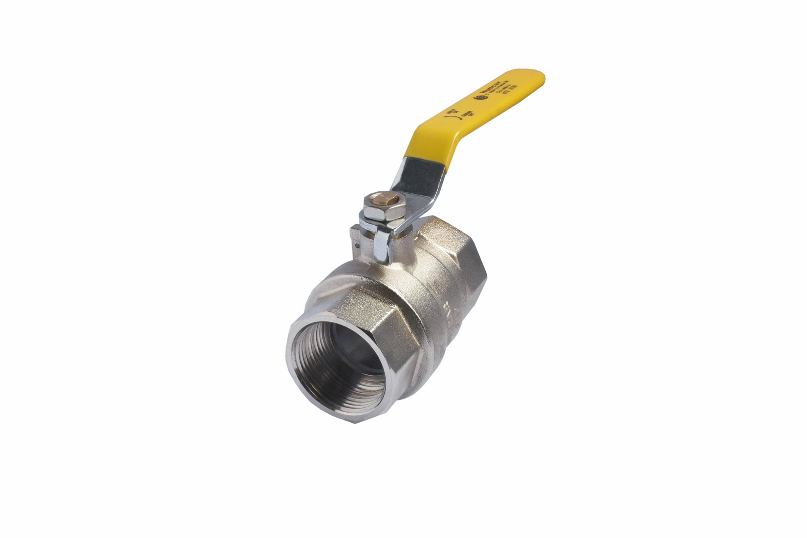 Valvula de Bola 1″ NPTh, X 1″ NPTh. Recubrimiento en Níquel, maneral tipo Palanca.